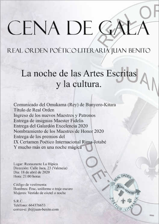 Para asistir a la Cena de Gala 2020 de la Orden Poético-Literaria Juan Benito, confirma tu asistencia en el teléfono; 664376653 |